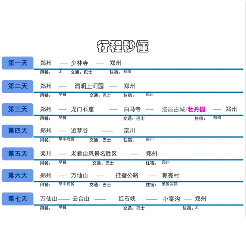 全程郑州起止,无需异地还车或额外交通安排,极大简化差旅后的返程流程。7天行程覆盖豫中精华,形成完美闭环,省去规划烦恼。无论是公司报销还是个人结算,交通逻辑清晰,票据统一,符合差旅管理规范,让度假报销更合规便捷。