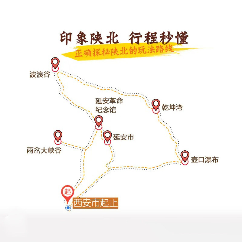 本产品采用西安集合、西安解散的闭环设计,极大便利差旅人士安排行程。无论您是从外地飞抵西安开会,还是结束本地公务,均可无缝加入此5日游。路线涵盖延安红色教育、壶口瀑布自然奇观、波浪谷地质奇景,内容丰富却不赶路,真正实现‘出差+度假’一体化高效出行。
