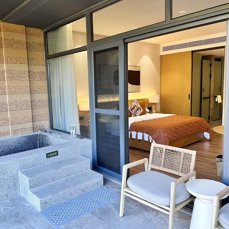 酒店设有山景房,推窗即见层峦叠翠,搭配私汤温泉,形成“山—水—居”三位一体的疗愈空间。对于长期处于城市高压环境的商务人士,这样的自然浸润能有效缓解焦虑、改善睡眠,让短暂的差旅成为一次微型康养之旅。