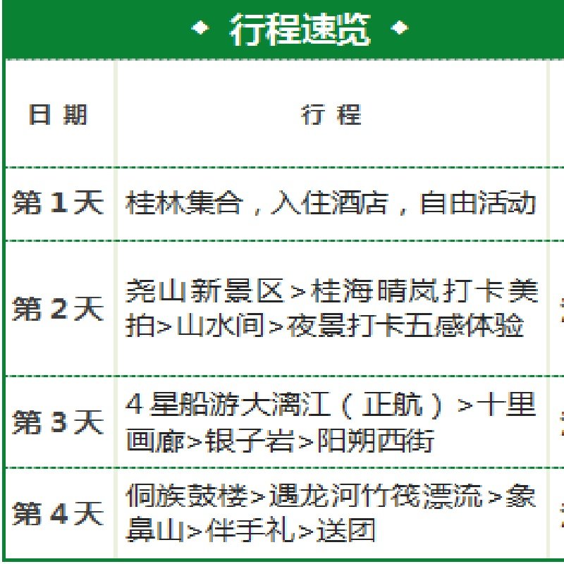 本行程支持1人单独报名,无需拼团等待,特别适合出差途中顺道度假或独自出行的商务人士。桂林四日游将漓江山水、阳朔田园与地道美食巧妙融合,在紧凑的4天3晚中实现高效放松。无论是会议间隙还是项目结束后的犒赏,都能轻松衔接行程,兼顾工作与休闲,让差旅不再枯燥,而是充满诗意与惬意的体验。
