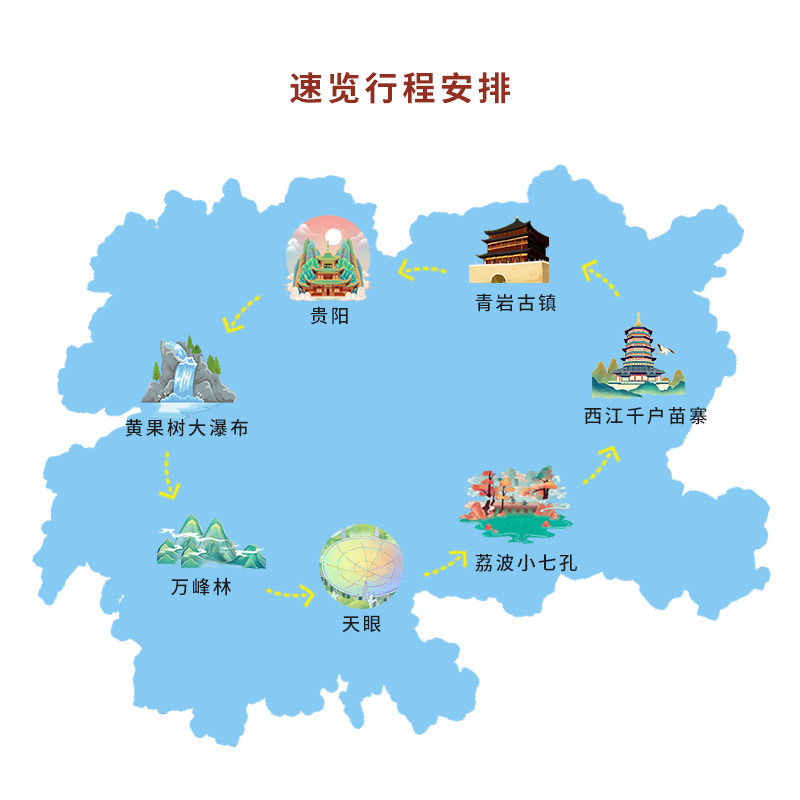 本行程专为差旅人士设计,从贵阳便捷出发,6天5晚高效串联黔东南、黔南、黔西南及安顺四大区域,涵盖万峰林、马岭河峡谷、黄果树瀑布、小七孔和西江千户苗寨等世界级景点。行程节奏合理,兼顾商务出行后的放松需求与文化体验,适合单人预订,无需拼团等待,真正实现说走就走的差旅度假。