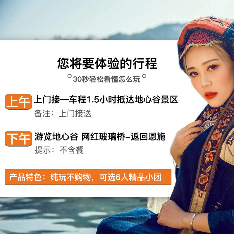针对商务人士或独自出差的旅客,本产品支持1人即可预订,无需拼团等待,极大提升了差旅安排的灵活性与效率。无论您是临时调整行程还是短暂停留恩施,都能快速锁定当日游览名额,节省沟通与协调成本,让差旅中的休闲时光无缝衔接工作节奏,真正做到说走就走、轻松度假。