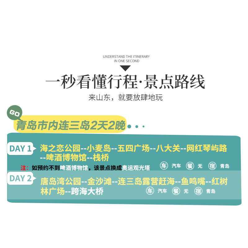 理解差旅计划常有变动,本产品提供清晰透明的取消政策——行程开始前6日以上免费退订,最大限度保障您的出行灵活性。结合青岛海岛、沙滩、露营等多元体验,即使临时调整行程也无后顾之忧,真正实现‘说走就走’的差旅度假自由。