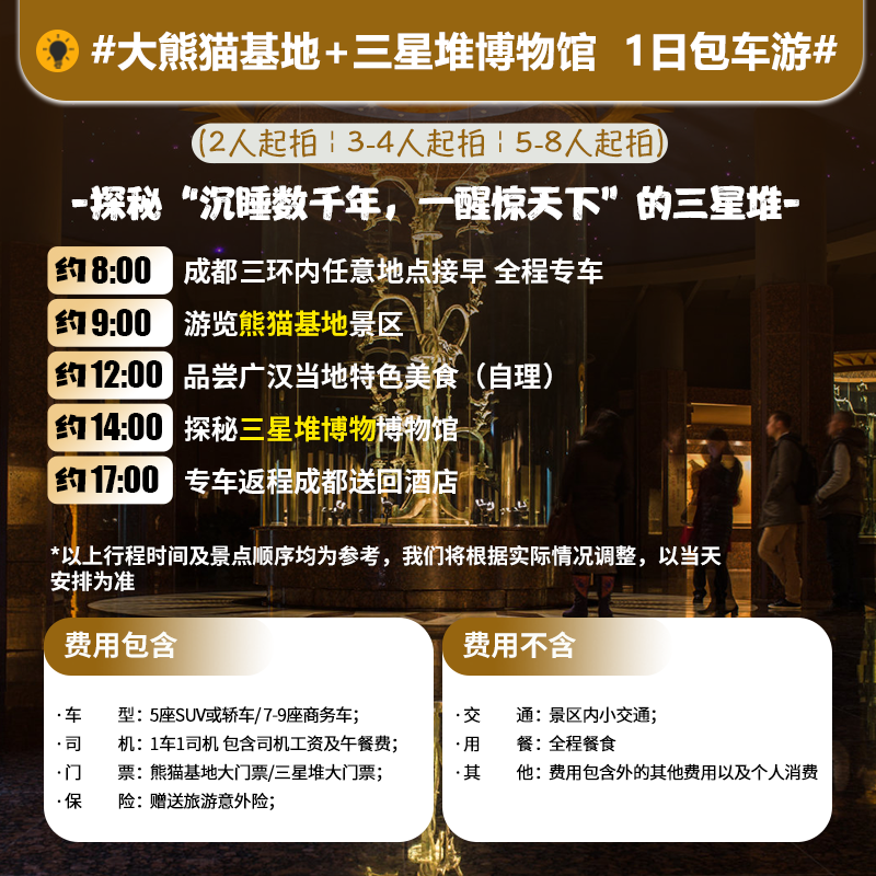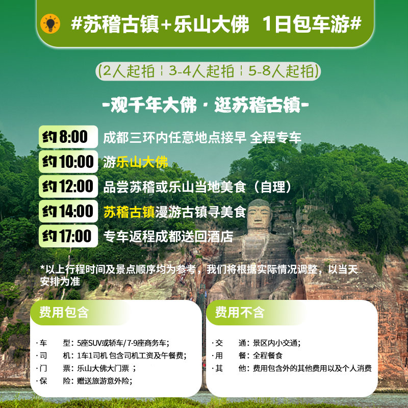 专为差旅人士设计,仅需2人即可独立成团,无需凑齐大团人数,极大提升行程灵活性。无论您是结伴出差、客户接待,还是独自旅行希望有人同行,都能快速成行。包车服务全程专属,避免公共交通耗时与不确定性,让您的商务行程之余也能高效享受文化之旅,兼顾效率与体验。