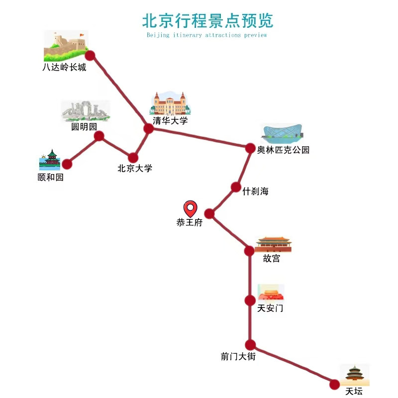 行程精心串联北京最具代表性的历史古建与文化地标——从紫禁城的皇家气韵到天坛的祭祀礼制,从颐和园的园林艺术到八达岭长城的雄浑壮阔,全方位满足人文旅行爱好者对古都文明的探索欲。出差之余,亦是一场精神层面的深度滋养。