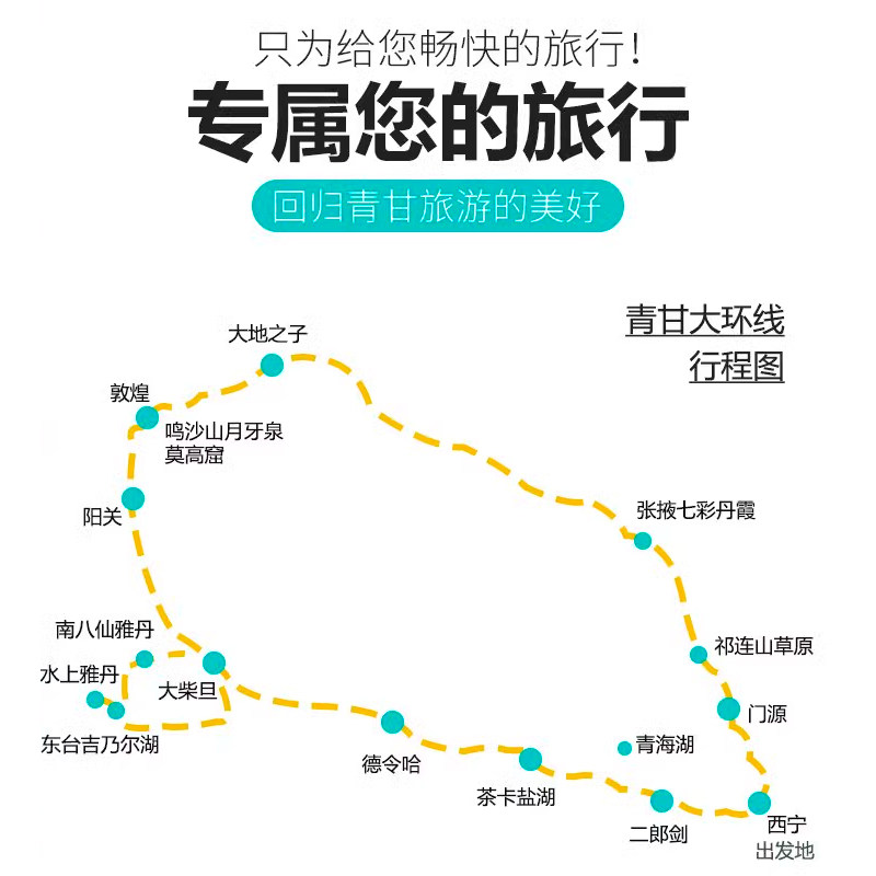 线路从西宁出发,途经海西、海南州、海北等青海核心区域,并延伸至甘肃酒泉、张掖等地,高效串联青甘两省重要城市与景点。对于需要跨区域出差的商务人士而言,此线路可巧妙将工作行程与深度旅游结合,实现‘一程多用’的差旅价值最大化。