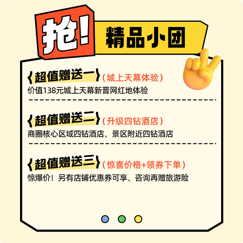 行程包含3晚舒适住宿、4天正餐、所有景点门票及导游服务,真正实现“一价全含”。差旅人士无需再为订房、买票、找餐厅等琐事分心,可将精力完全投入到工作收尾或旅途享受中。尤其适合希望在短暂假期中彻底放松、拒绝做攻略的商务旅客。只需带上行李,其余交给我们,让差旅后的度假成为真正的减压良方。