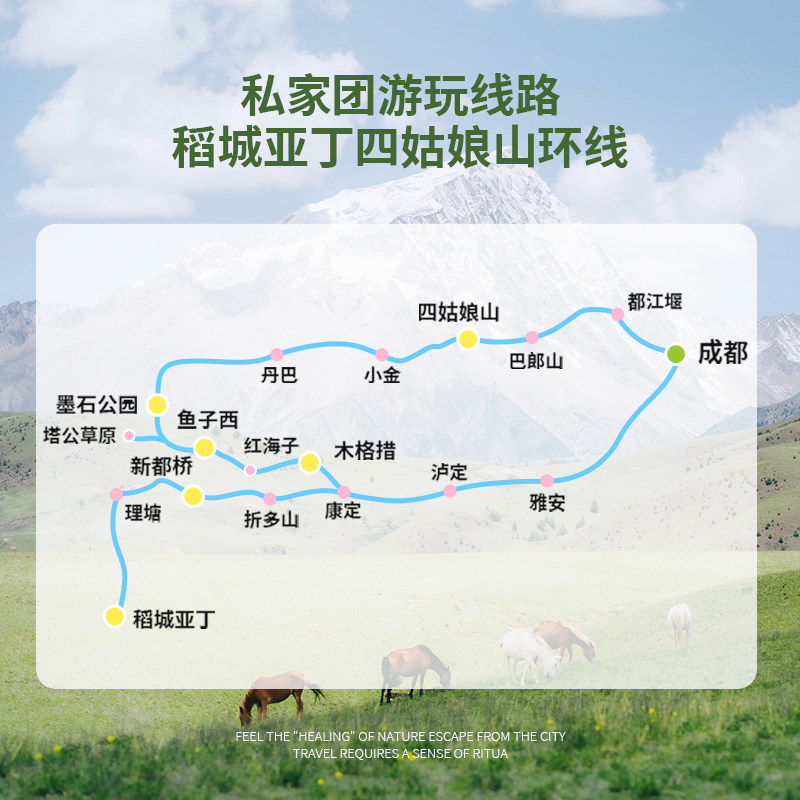 以成都为始发与终点城市,充分利用其作为西南交通枢纽的区位优势,方便全国差旅人士衔接航班或高铁。行程环线设计避免走回头路,高效覆盖阿坝、甘孜两大藏区精华,7日内完成稻城亚丁、四姑娘山等世界级景观打卡,极大提升差旅期间的度假效率与体验密度。