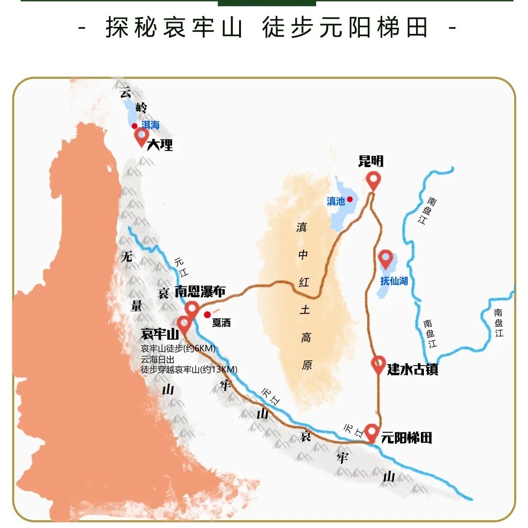 针对长期处于高压办公环境的差旅人群,本行程特别强化户外运动模块。哀牢山徒步路线难度适中,既有挑战性又确保安全,配合专业向导与基础补给保障。在海拔1500-2500米的山林间行走,有助于改善心肺功能、调节生物节律。这种‘运动型差旅’不仅是一次旅行,更是一场身体重启计划,助您以更佳状态回归职场。