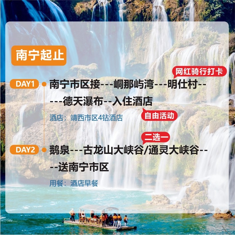 线路覆盖南宁与崇左两大广西城市,两地相距仅约150公里,车程2小时左右,非常适合从南宁出差后顺道开启短途度假。无需额外安排大段假期,利用周末或工作间隙即可完成一次深度自然人文之旅,既节省交通成本,又最大化利用差旅时间,让商务出行也能收获诗意山水。