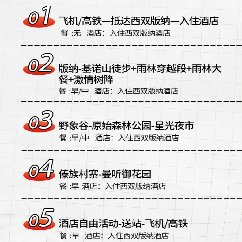 本产品支持从北京、上海、广州、深圳、成都、杭州等全国28个主要城市出发,覆盖华北、华东、华南、西南等各大区域,商务人士可灵活选择就近出发地,节省中转时间与成本。无论您是结束一场紧张的会议,还是完成阶段性项目,都能无缝衔接热带雨林度假之旅,实现高效差旅与深度休闲的完美融合。