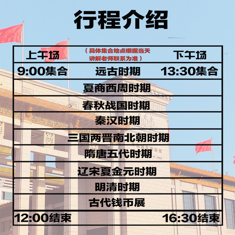 差旅人士最宝贵的是时间。本产品已包含国家博物馆门票,并由导游协助快速入馆,避免现场预约失败或长时间排队的不确定性。3小时行程严格计时,确保您能准时返回酒店或赶赴下一场会议。全程无购物、无隐形消费,真正实现“说走就走、准时结束”的高效差旅文化体验。