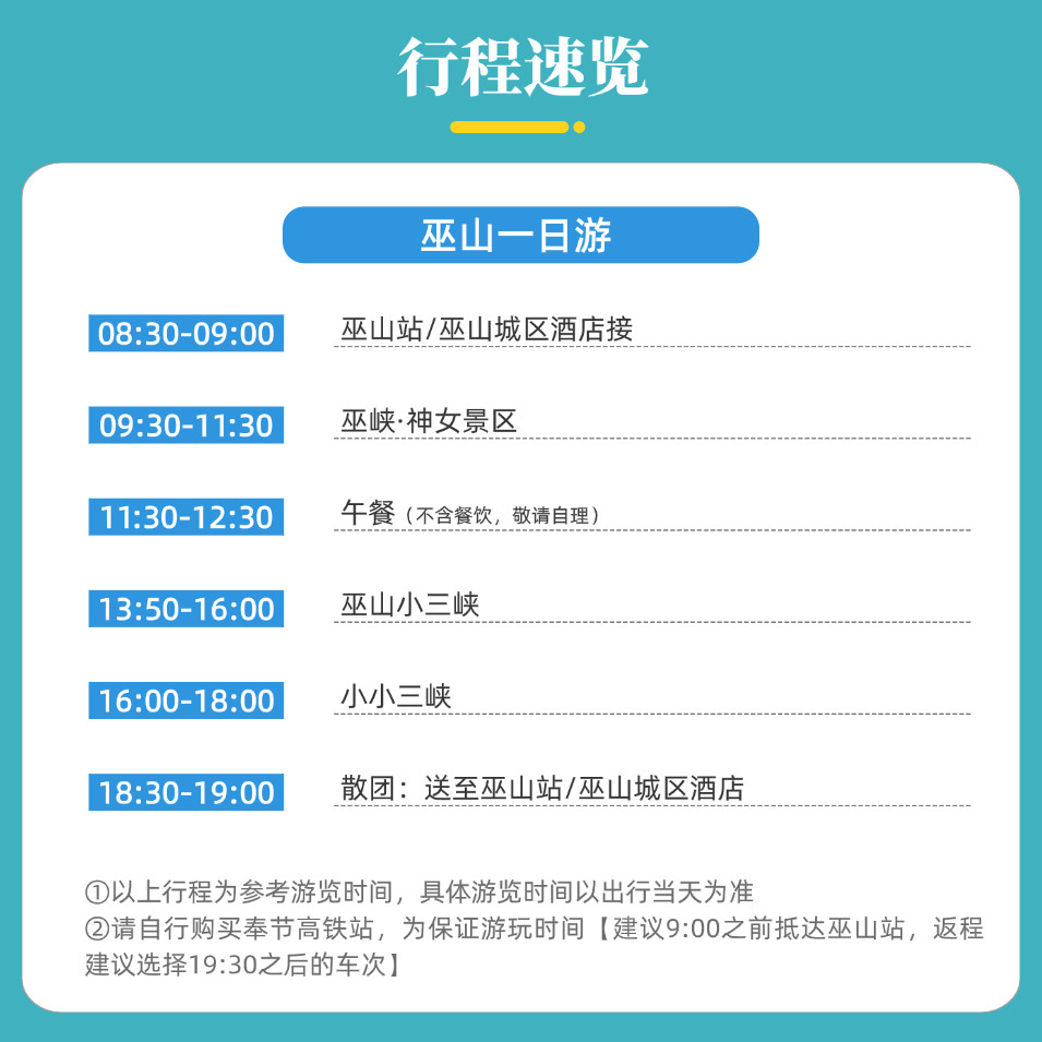 专为差旅人士设计的巫峡神女景区+小三峡一日游私家团,提供高度灵活的行程定制服务。无论您是商务出差间隙想短暂放松,还是会议结束后希望与同事共赏秋景,均可根据您的时间、兴趣和节奏调整游览内容。无需拼团等待,专属车辆与导游全程陪同,确保高效利用有限假期,兼顾工作与休闲,真正实现“说走就走”的高品质差旅体验。
