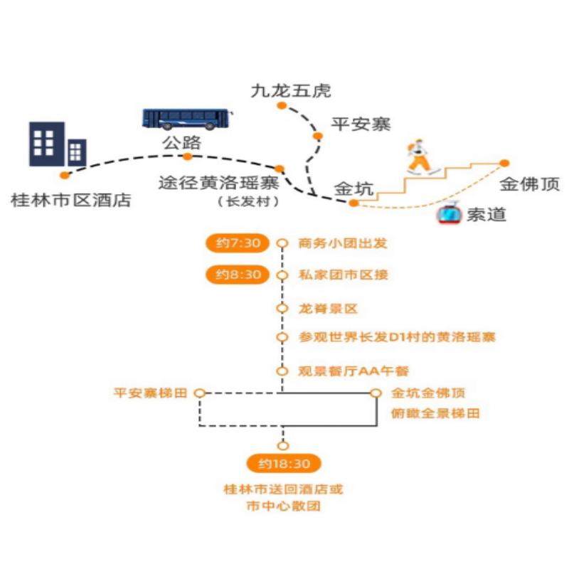 本行程专为商务人士设计,从桂林市区出发,当日即可完成龙脊梯田精华游览并返回,极大节省差旅时间。无需额外安排住宿,避免多日请假困扰,让您的商务出行与休闲观光无缝衔接。无论是会议间隙还是项目结束后的短暂休整,都能轻松享受世界级梯田景观,兼顾效率与放松。