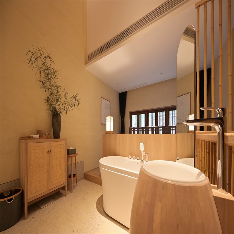 望仙谷仙宿复式大床房采用LOFT结构设计,上下分层布局巧妙划分休息与活动区域,既保障私密性,又提升空间利用率。对于携带资料或需临时处理工作的差旅人士而言,这种立体格局能有效营造“办公+休憩”双重场景,避免传统单间房的局促感,让短暂驻留也能拥有居家般的秩序与舒适。