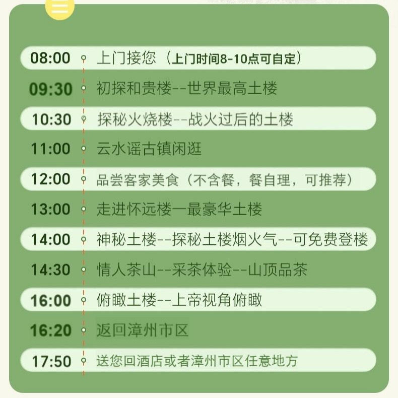 专为差旅人群量身打造的一日游行程,时间紧凑却不仓促,上午出发、傍晚返回,完美适配高铁或航班中转间隙。无需额外请假或调整工作计划,即可完成一次高质量的休闲体验。从漳州市区出发便捷,包车直达景区,省去换乘烦恼,让差旅中的小憩变得高效而惬意。