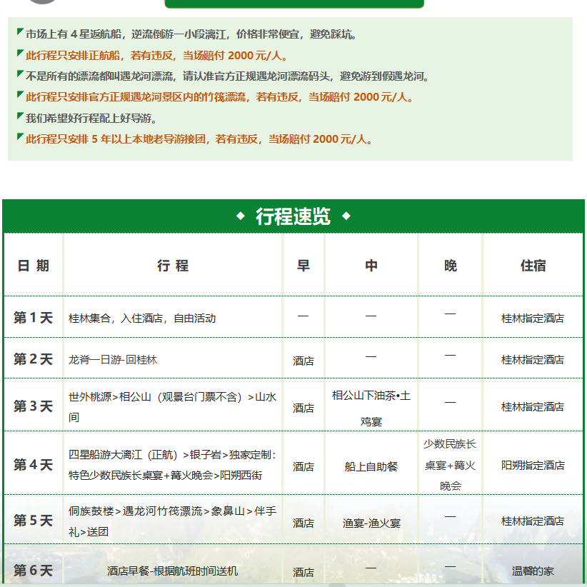 杭州作为数字经济高地,差旅频繁。本产品专为杭城商务客定制,支持单人成行,灵活匹配出差日程。从西湖到漓江,从现代都市到千年古镇,6天行程涵盖大漓江四星船游、梯田观光及民俗晚宴,既延续江南的诗意审美,又带来全新地域文化体验。高品质住宿与纯玩保障,让差旅后的短假更显珍贵。