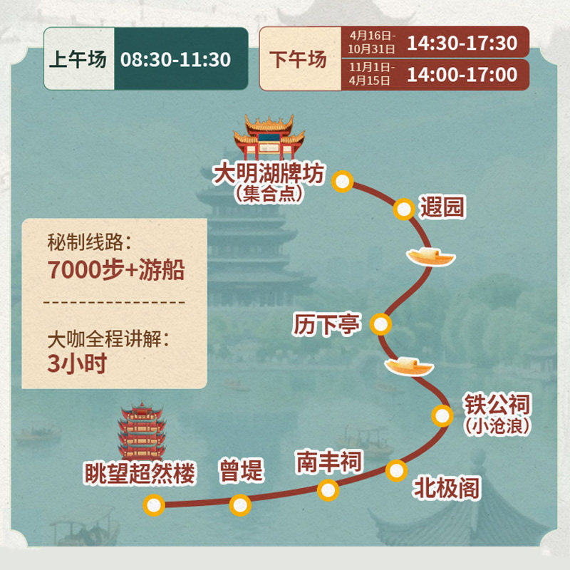 专为商务差旅人士设计,本行程仅需3小时即可高效游览济南核心文化地标——大明湖及周边历史古建。无需占用完整工作日,午休或会议间隙即可轻松参与。15人小团确保体验私密性与互动性,专业讲解员以“大咖说”形式生动解读泉城人文底蕴,让短暂差旅也能收获深度文化体验,兼顾效率与品质。