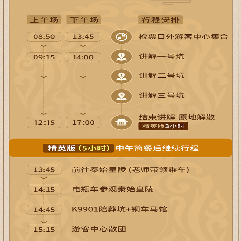 对于商务出差或短暂停留西安的旅客而言,时间尤为宝贵。本产品提供3-5小时精华讲解行程,覆盖秦始皇帝陵博物院核心展区,由专业金牌导游深入解读兵马俑背后的历史与工艺,无需耗费整天即可完成世界级文化遗产的深度体验,完美契合差旅人士高效利用碎片化时间的需求。