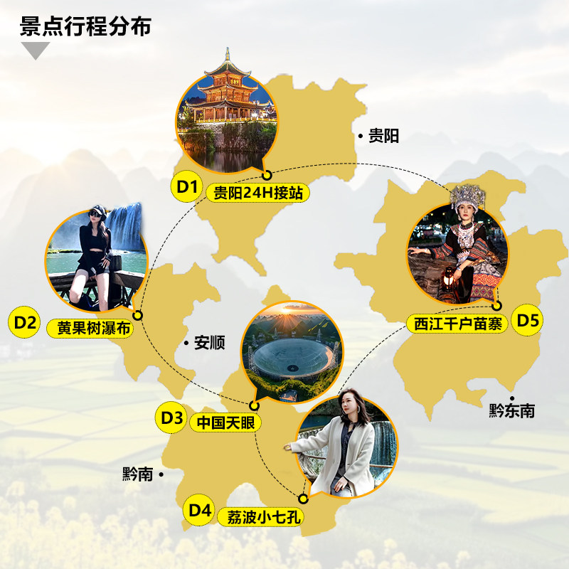 5天4晚行程覆盖贵阳、安顺(黄果树)、黔东南(西江千户苗寨)、黔南(小七孔、天眼)四大区域,高效串联贵州精华景点。对于时间有限的差旅人士而言,无需多次往返即可一次性领略喀斯特地貌、少数民族风情与天文科技奇观,极大提升假期利用效率,真正做到‘一次出行,多重体验’。