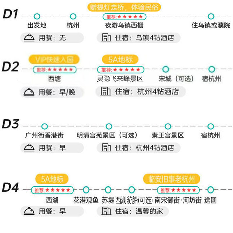 本行程专为商务差旅人士设计,从杭州便捷出发,4日内高效覆盖乌镇西栅、南浔、西塘、灵山、横店及西湖六大经典目的地。路线规划科学,减少无效交通时间,兼顾文化体验与休闲放松,适合在紧凑差旅间隙安排短途度假,实现工作与旅行的完美平衡。