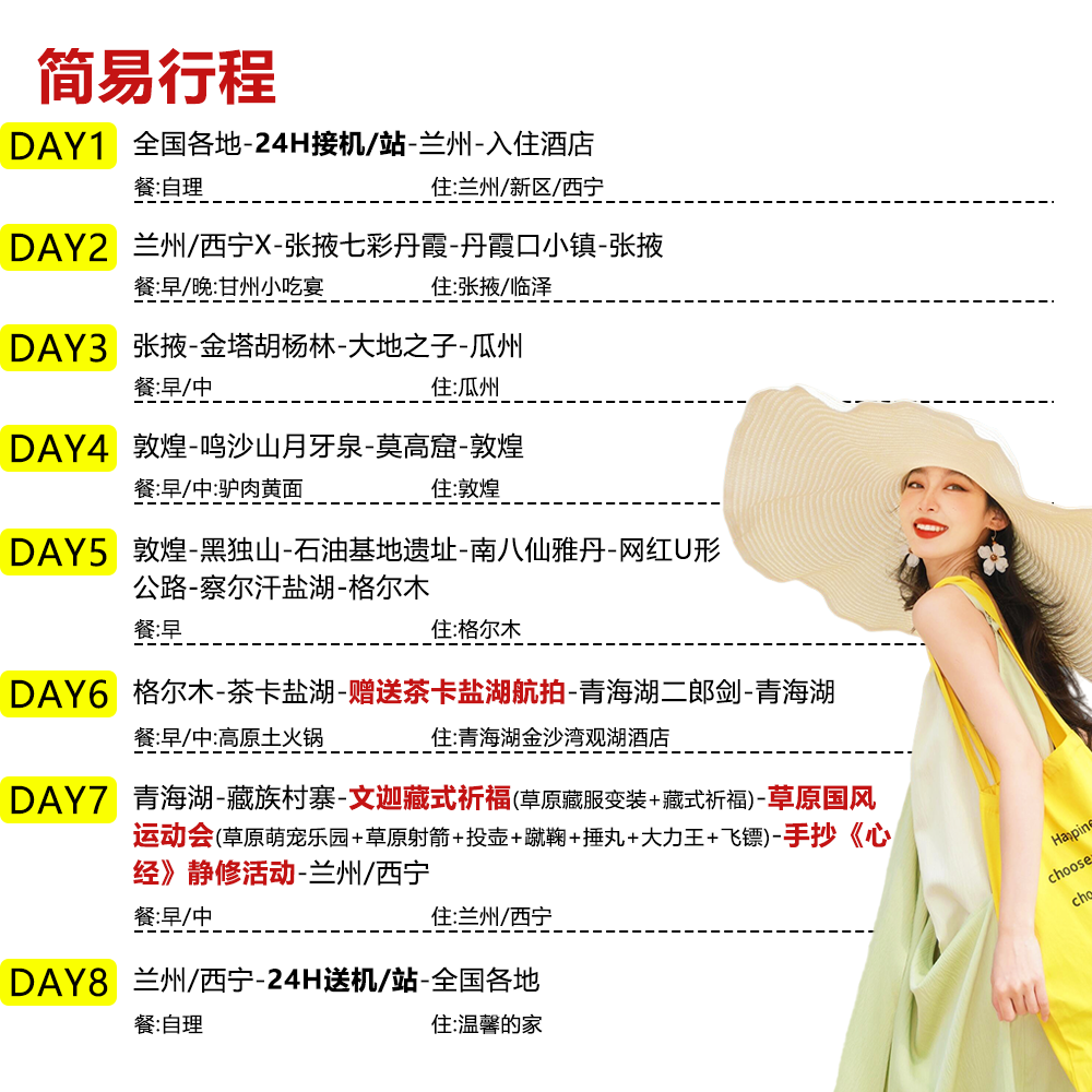 无论您从北京、上海、广州、深圳等一线城市,还是成都、杭州、武汉、重庆等新一线枢纽出发,本线路均支持便捷直飞或高铁接驳至兰州,开启8天7晚的甘青大环线之旅。特别适合差旅人士在会议或项目间隙安排短途深度度假,行程紧凑却不仓促,兼顾效率与体验,实现‘工作+旅行’无缝切换。