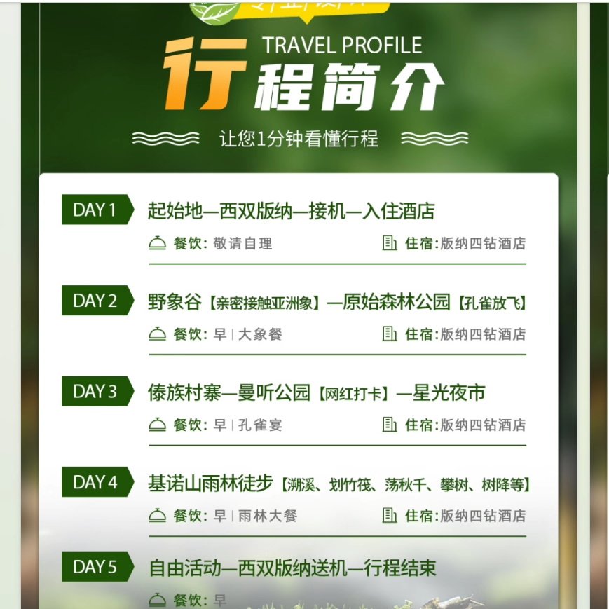 区别于传统观光团,本行程聚焦‘雨林+民族文化’双主题,安排傣族村寨探访、孔雀宴品尝、孔雀放飞仪式等特色活动,让差旅人士在有限时间内深度感知当地人文魅力。特别设置基诺山雨林徒步与雨林餐体验,在原始生态中释放工作压力。这种高浓度文化沉浸式设计,契合现代商务人群对‘有意义旅行’的追求,使短暂假期兼具疗愈与认知价值。