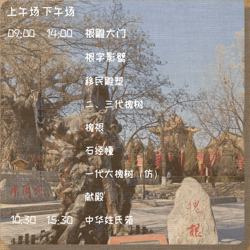 区别于普通观光,本产品以“历史文化游”为核心,围绕大槐树移民史展开叙事,涵盖古村古镇风貌、宗祠建筑艺术及民俗传承。差旅人士可在短时间内汲取厚重文化养分,将商务出行升华为一次有温度、有深度的精神旅程,缓解工作压力的同时拓展视野。