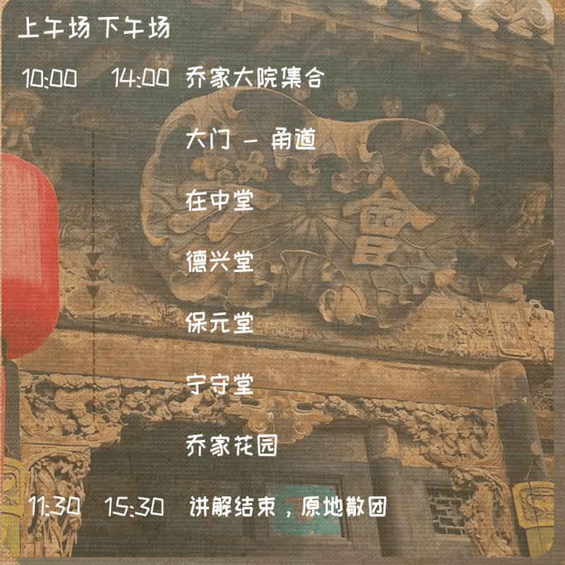 本产品精准契合‘历史古建’与‘人文旅行’主题,专为重视文化内涵的差旅人群设计。通过系统讲解乔家大院的建筑形制、家族历史与社会背景,帮助游客在短时间内建立对晋商文化的立体认知,使短暂差旅也能收获有深度的文化记忆。