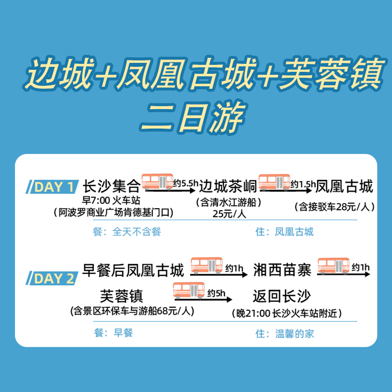 针对差旅人群时间碎片化、精力有限的特点,本产品以‘苗服换装+古镇探秘’为主题,一站式整合交通、住宿、门票、体验及导览服务。无需自行研究路线或比价预订,下单即享全程无忧安排,让您把宝贵时间留给真正的放松与探索,而非繁琐的行程筹备。