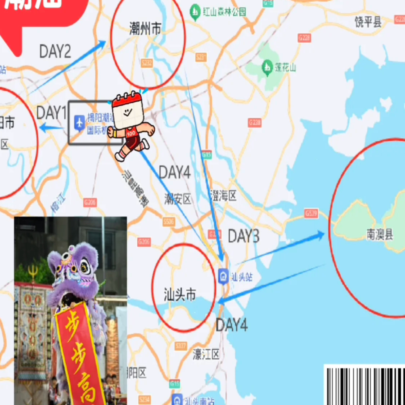 行程以汕头为起止点,覆盖潮州等周边目的地,充分利用高铁1小时交通圈优势。对于在粤东地区出差的商务人士而言,无需额外奔波即可开启度假模式。紧凑而合理的路线规划,最大化利用周末或会议间隙,实现‘出差+度假’一体化高效出行。