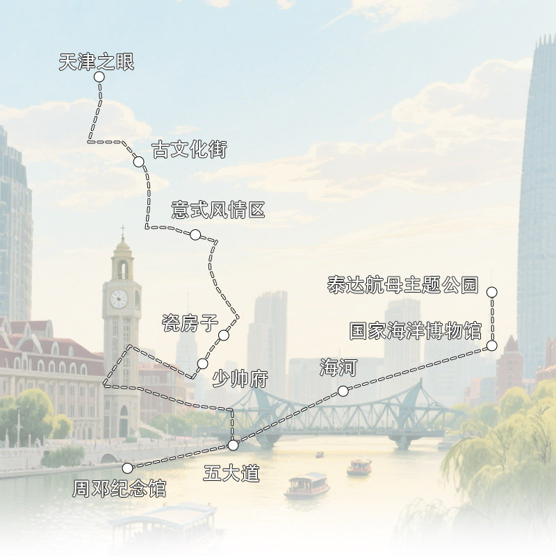 出发地与目的地均为天津,免除机票、高铁等大额交通支出,大幅降低差旅度假总成本。对于已在天津出差的用户,只需利用周末或调休时间即可开启4日深度游。节省的交通费用可投入更高品质的餐饮或住宿体验,让有限预算发挥更大价值,轻松实现说走就走的微度假。