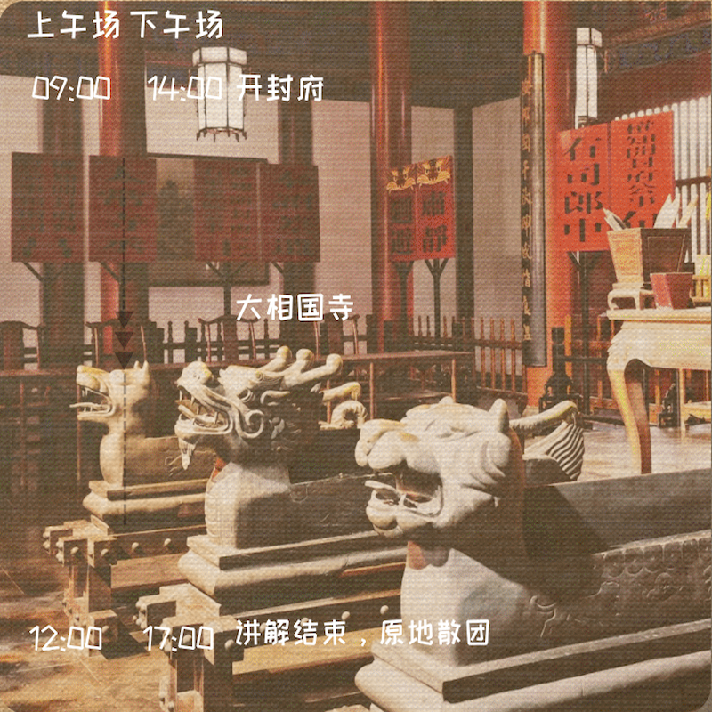不同于走马观花的观光团,本产品由本地文化品牌“汀兰集”打造,强调在地性与故事性。通过讲述大相国寺的皇家渊源、开封府的司法制度等细节,帮助差旅者真正理解开封作为八朝古都的独特魅力,实现深度在地体验。
