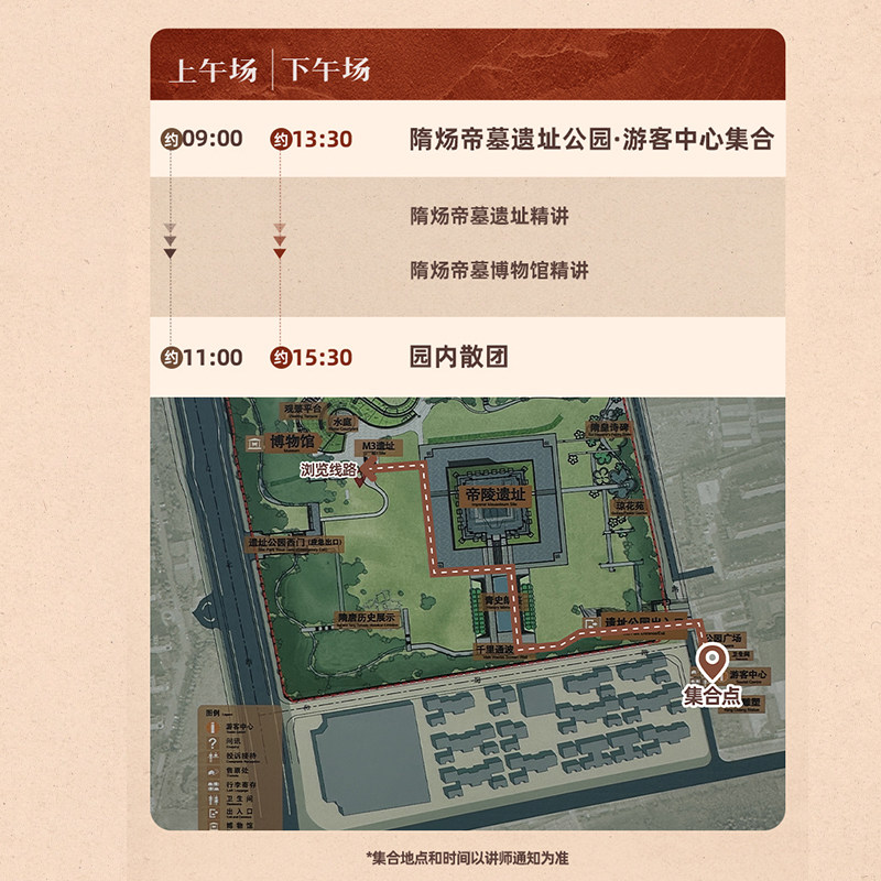 由“大咖说”合作的历史学者或资深文博讲解员带队,内容兼具专业性与趣味性。差旅人士可在轻松氛围中获取权威历史知识,了解隋炀帝争议人生、墓葬形制演变及考古发现背后的故事。这种高信息密度的体验,远超普通观光,让短暂旅程更具价值。