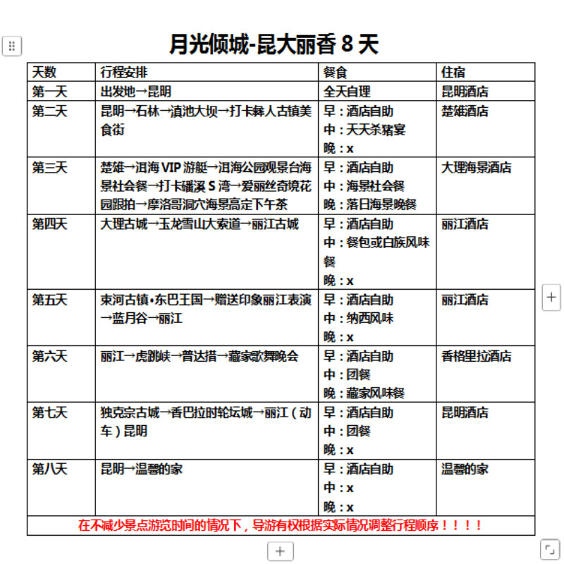 对于需携带子女同行的差旅家庭,本产品贴心融入亲子游玩元素。在大理古城手作扎染、丽江束河古镇喂小马、香格里拉草原亲近自然等互动项目,既满足孩子探索欲,又让家长在陪伴中放松。全程住宿优选家庭友好型海景房,设施齐全、安全舒适,让差旅不再只是任务,而是一段温馨的家庭共处时光。