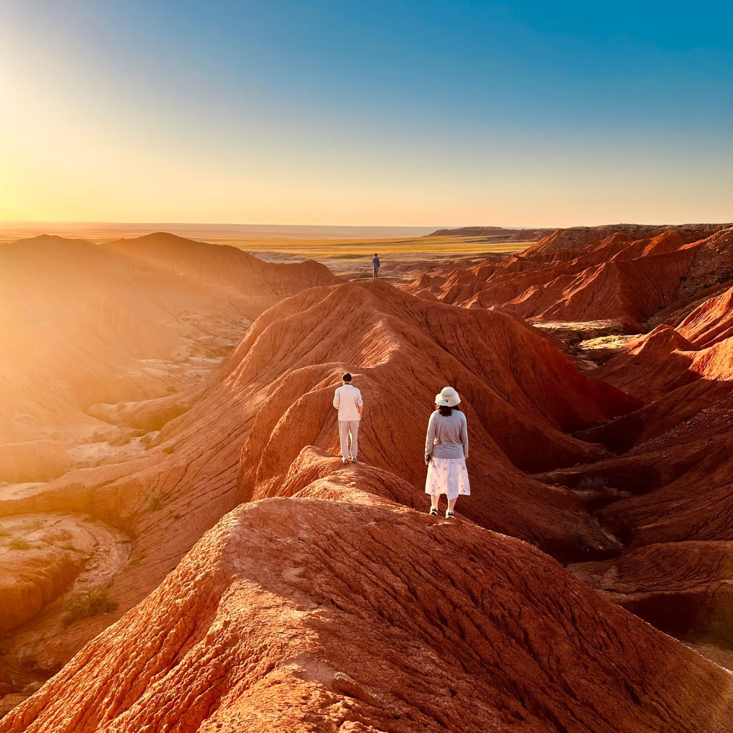 特别安排在乌兰哈达火山与辉腾锡勒草原的最佳观景点守候日落。当夕阳余晖洒在黑色火山岩与金色草浪之上,光影交错,氛围感拉满。对于长期伏案工作的差旅族而言,这不仅是一场视觉疗愈,更是情绪释放的绝佳契机。随手一拍即是大片,为繁忙工作注入诗意片刻。