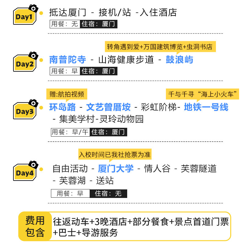 差旅高效衔接:动车直达厦门,4天3晚纯玩无购物