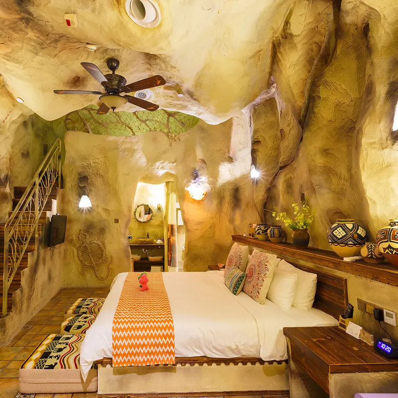 • 住:酒店拥有鲜明的恐龙元素,集主题住宿,主题餐厅一体的旅游度假酒店
