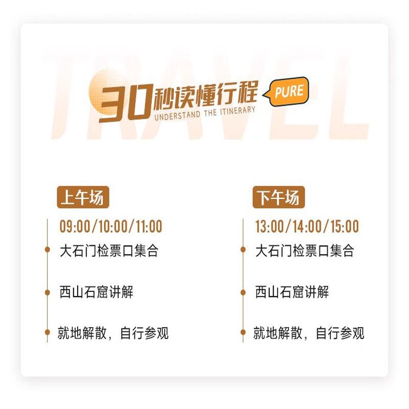 产品起点与目的地均为洛阳本地,无需长途交通接驳,节省差旅时间成本。对于已在洛阳出差的旅客,可直接从酒店或办公地点出发,快速抵达景区,实现“说走就走”的本地文化探索。这种在地化设计极大提升了差旅期间碎片时间的利用效率。