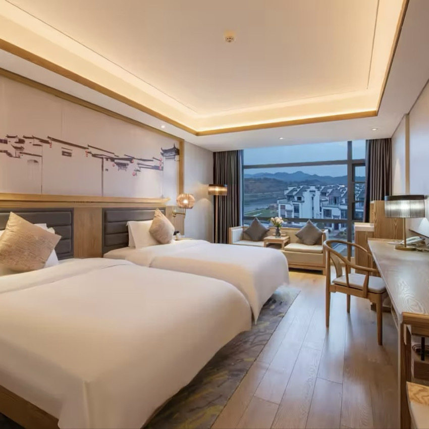 厌倦了千篇一律的商务酒店?婺源宝婺度假酒店以中式古典风格打造独特住宿体验,木质结构、雕花窗棂与现代设施巧妙融合。每一间客房均保持高标准清洁,床品柔软亲肤,让您在差旅中也能享受如家般的舒适与审美愉悦,真正实现‘住得舒服,走得从容’。