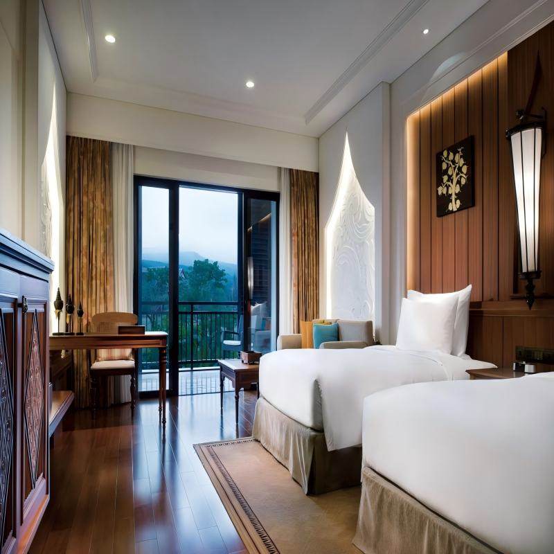 西双版纳洲际度假酒店环境清幽,宛如一座热带花园,绿意盎然、鸟语花香,为差旅人士提供远离喧嚣的静谧空间。无论是结束一天会议后的放松,还是短暂休整后再出发,这里都能满足您对舒适住宿的所有期待。酒店整体设计融合傣族风情与现代美学,房间宽敞明亮,设施齐全,兼顾商务办公与休闲度假需求,是高效差旅与品质生活的理想结合点。