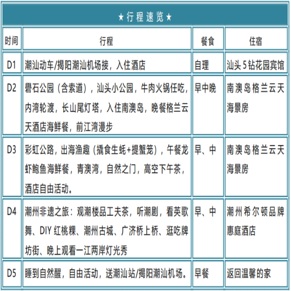 行程特别升级入住汕头5钻花园宾馆与潮州希尔顿惠庭酒店,并在南澳岛连住2晚格兰云天海景房。高品质睡眠环境对频繁差旅者至关重要,静谧海景与高端设施助您快速恢复精力,以最佳状态投入后续工作或深度游玩,真正实现“度假式差旅”的身心平衡。