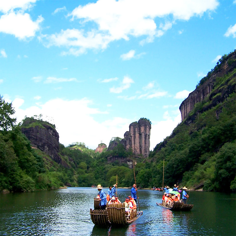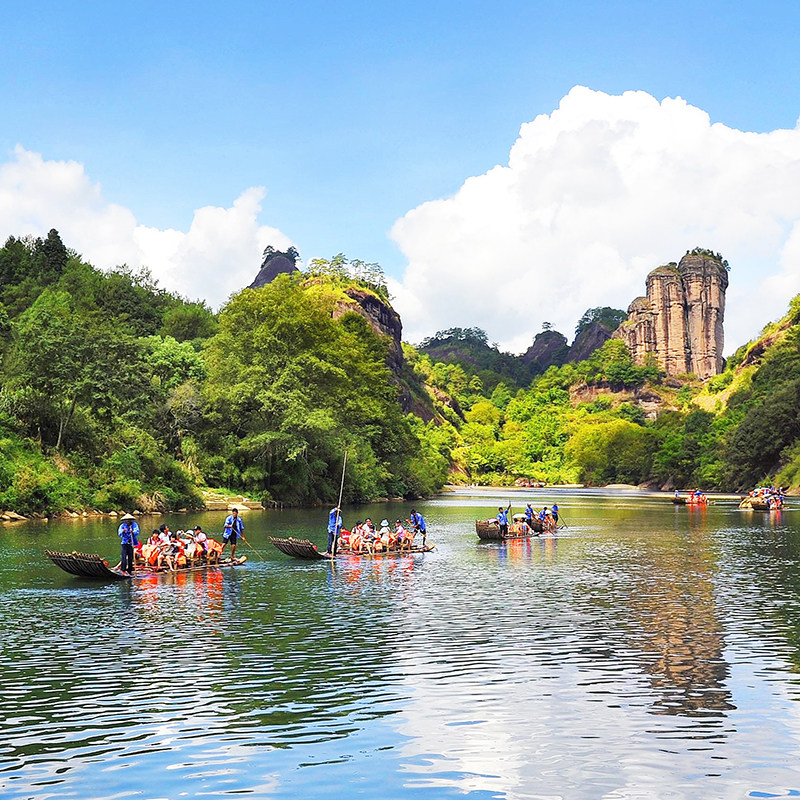 作为世界文化与自然双遗产地的核心体验,九曲溪竹筏漂流是武夷山不可错过的经典项目。乘坐传统竹筏顺流而下,两岸奇峰倒映碧水,宛如置身水墨长卷。对差旅人士而言,这不仅是一次放松身心的水上之旅,更是高效获取深度自然体验的绝佳方式,短短一小时即可领略武夷精华。