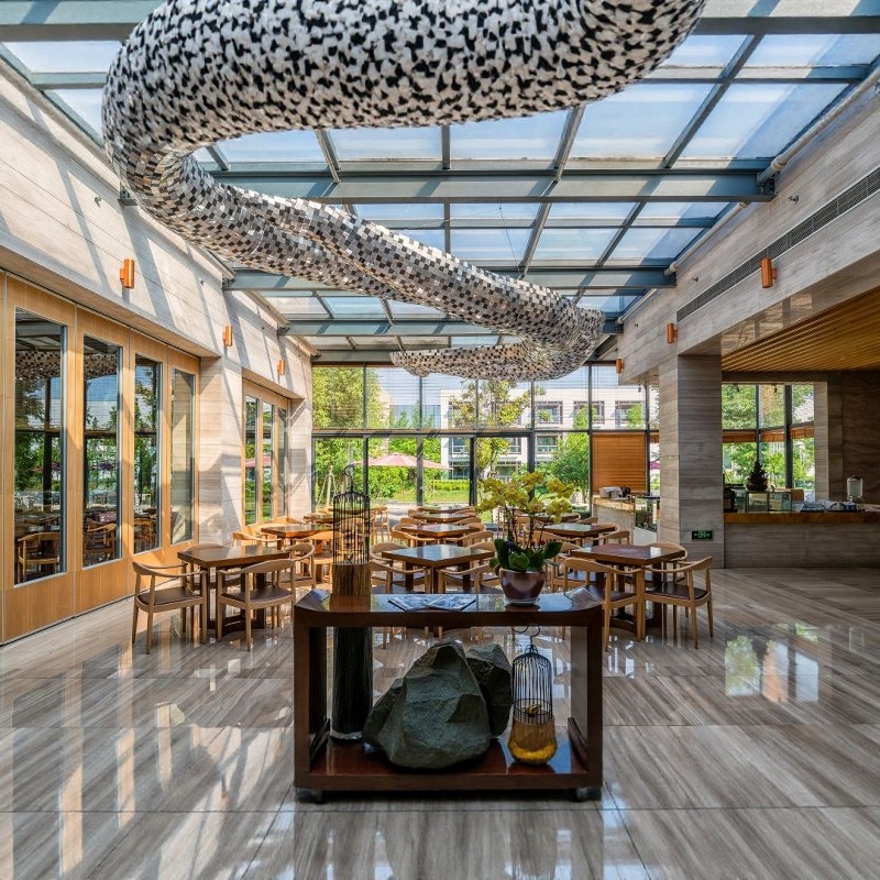 酒店依湖而建,部分豪华房直面湖景,推窗即见波光潋滟。清晨在湖风中享用早餐,夜晚伴水声入眠,有效缓解差旅带来的焦虑与疲劳。这种自然疗愈力远胜普通城市酒店,特别适合需要深度思考或高压工作的专业人士,在宁静环境中快速恢复精力,以更佳状态投入后续行程。