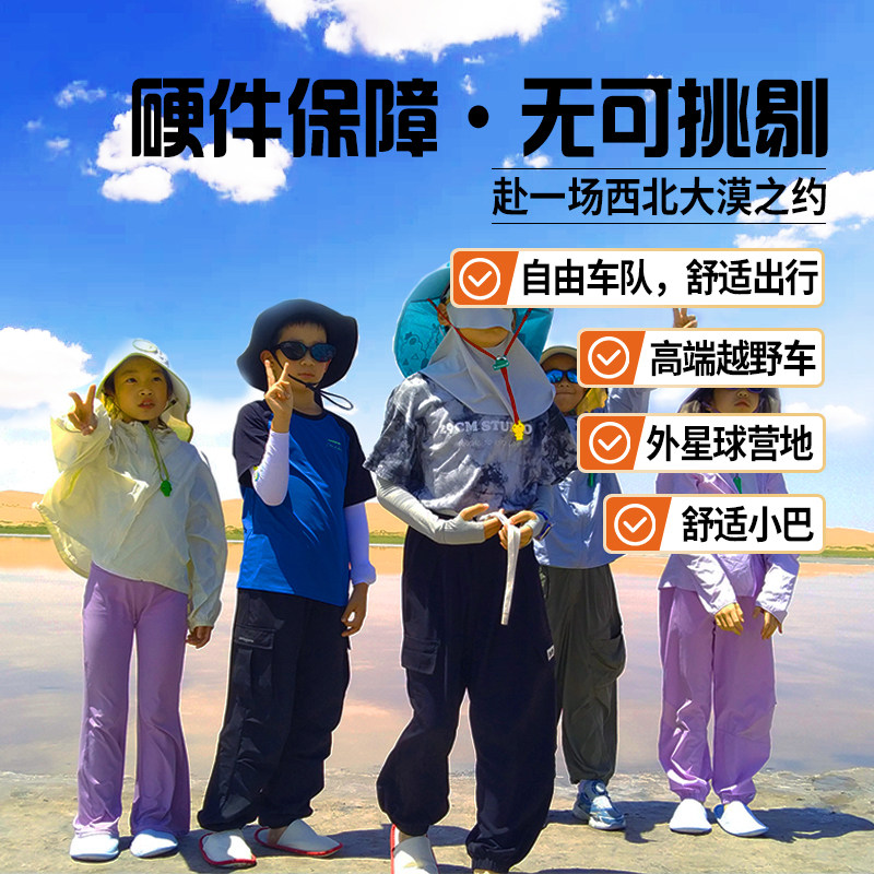 针对带娃出差或家庭差旅人群,本产品融合亲子研学元素,在腾格里沙漠露营、乌兰湖探秘等环节中融入地理、生态知识讲解,让孩子在真实自然场景中学习。家长可在完成公务后无缝衔接高质量亲子时光,实现差旅效率与家庭陪伴的双重目标。