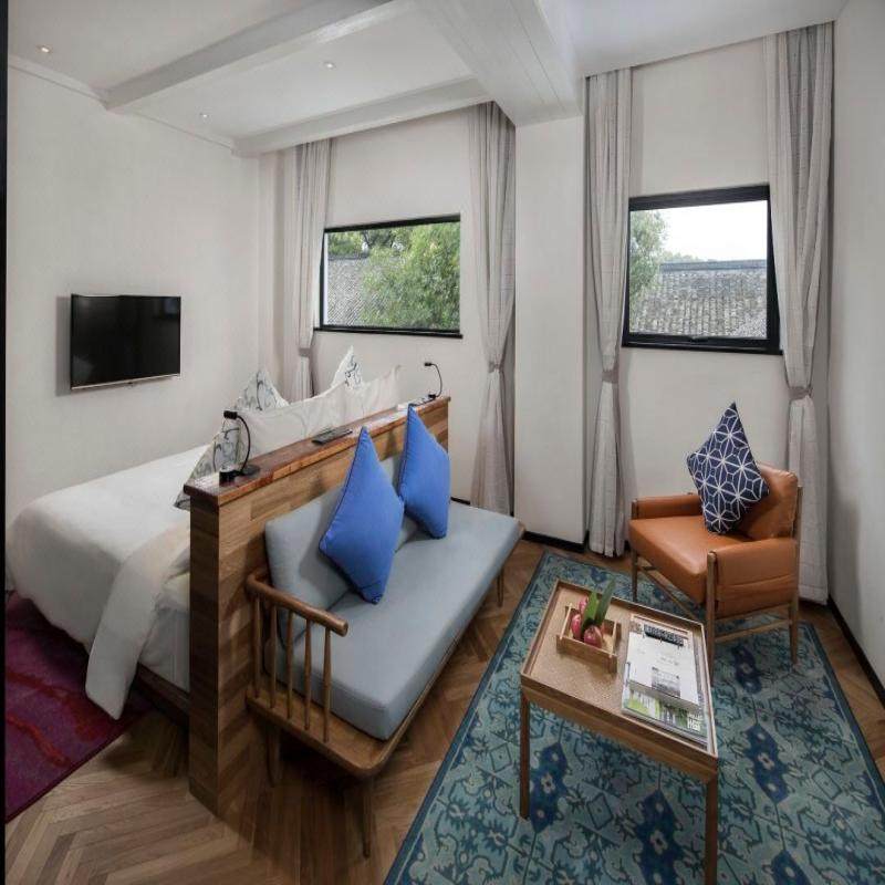酒店直接位于同里古镇内部,打破传统“住城郊、游景区”的割裂模式。差旅人士无需舟车劳顿往返市区与景点,推窗即见水乡景致,步行数分钟即可深入古镇腹地。这种“住在风景里”的布局极大压缩交通耗时,尤其适合紧凑型商务行程——上午洽谈、下午考察、夜晚放松,全程高效流畅,真正实现工作与休闲的无缝切换。
