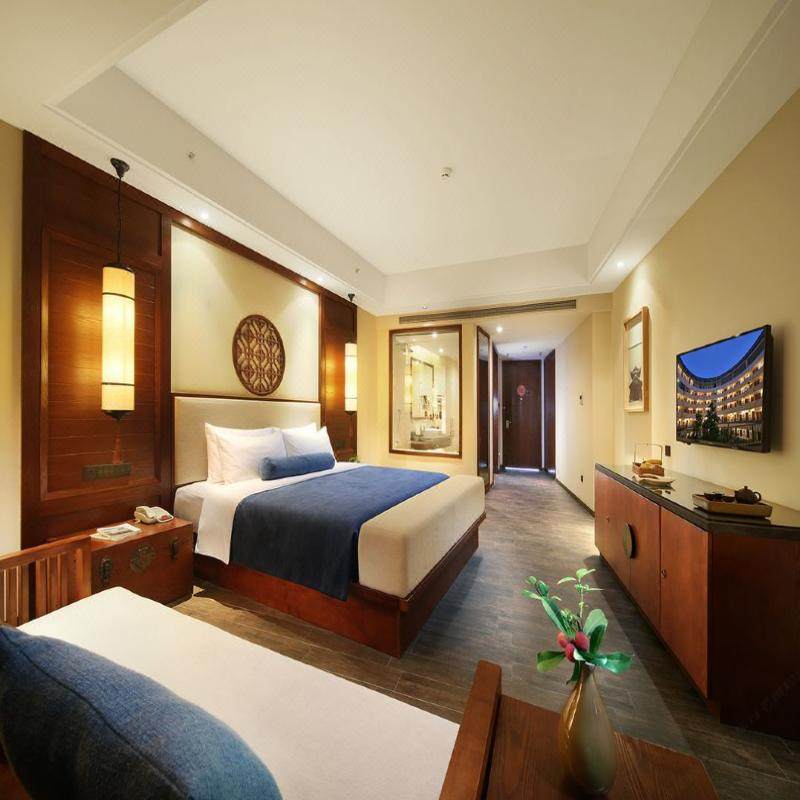 酒店深度融合客家文化与自然生态,差旅客人不仅能登冠豸山赏丹霞地貌,还能参与泉水品茗、森林骑行、户外瑜伽等养生项目。更有扎染、雕版印刷等非遗体验,让短暂的停留充满文化厚度。对注重精神滋养的商务人士而言,这不仅是一次住宿,更是一场身心与文化的深度对话。