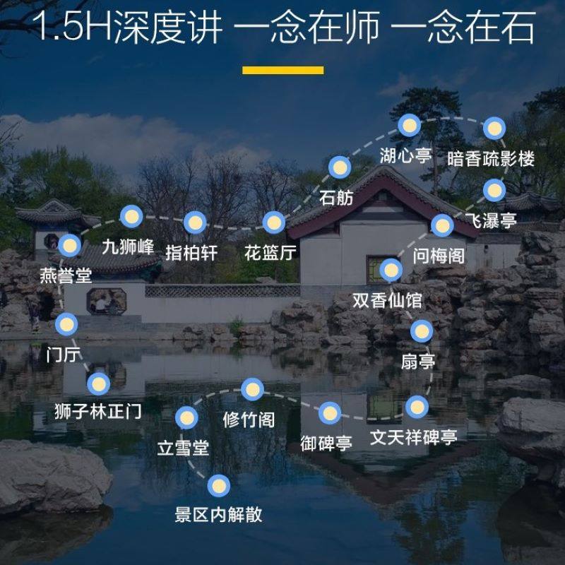 在繁忙差旅中寻找精神滋养?本产品融合“人文旅行”与“研学”元素,带您走进元代名园狮子林,通过1.5小时专业讲解,了解假山迷宫背后的禅宗文化、造园艺术与历史典故。适合希望在工作之余提升文化认知的商务人士,将差旅转化为一次有深度的文化充电之旅。