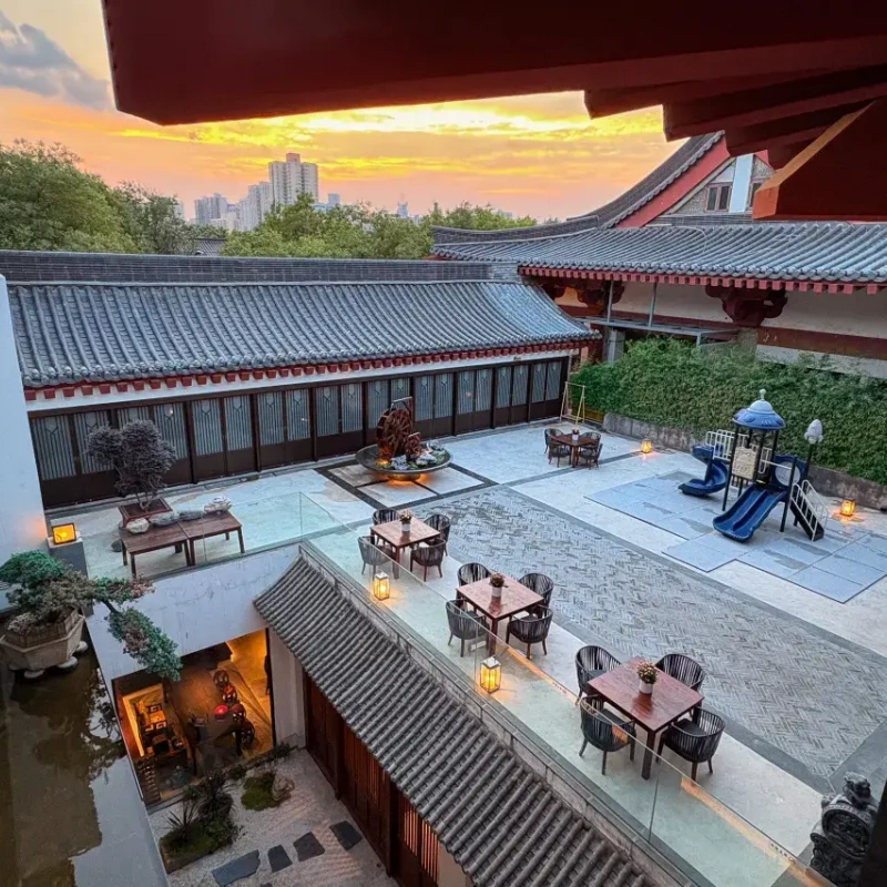 即便身处城市核心区,酒店仍打造出露台泡池园景房、星空泡池庭院房等独特房型,配备私密观景台,让您在繁忙差旅中随时享受片刻宁静。夜晚泡在温热池水中仰望星空,或清晨在露台啜饮咖啡俯瞰城市苏醒,这种“闹中取静”的体验,重新定义了商务出行的休憩标准。