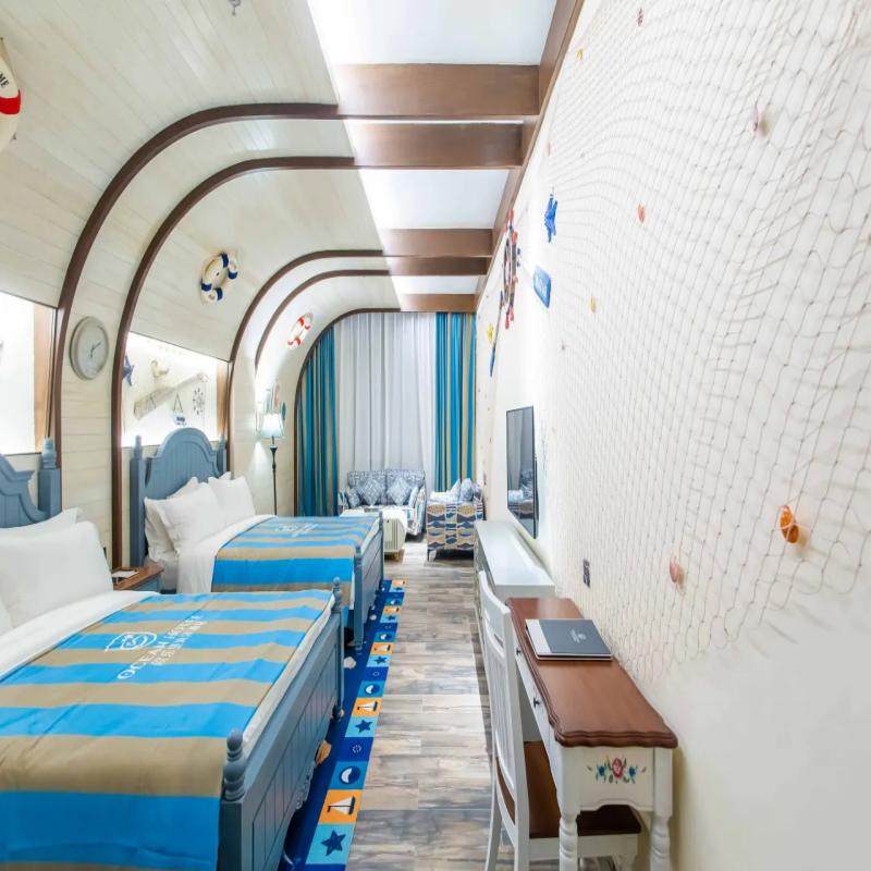 产品融合‘树屋’与‘海洋’双重主题元素,打破传统差旅住宿单调感。水手主题房不仅视觉新颖,更通过场景化设计激发孩子兴趣,让短暂的差旅假期成为难忘的家庭回忆。福州欧乐堡区域集游乐、科普、休闲于一体,家长可在孩子沉浸游玩时高效处理远程工作,实现事业与亲情的双赢平衡。